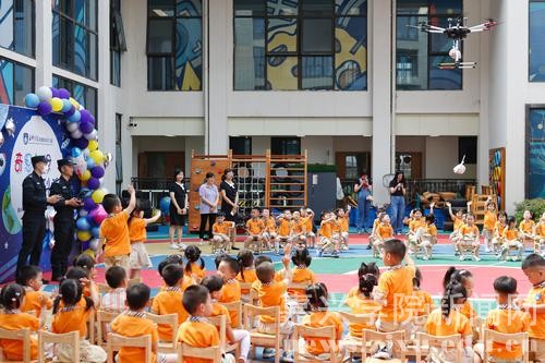 今天(6月1日)上午,嘉兴市公安局特警支队警务航空队来到嘉兴学院附属实验幼儿园,用三架无人机展现现代空中警务力量,宣传警务知识。同时,无人机为孩子们空中投放儿童节礼物,送上节日的祝福。