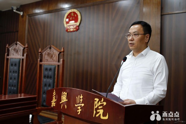在嘉兴禁毒模拟法庭上,嘉兴学院文法学院法学专业的学生模拟了未成年被告人因交友不慎,走上了运输贩卖毒品的犯罪道路,最终受到法律的审判。嘉兴学院、同济大学浙江学院、嘉兴职业技术学院、嘉兴南洋职业技术学院等高校的大学生代表参加了庭审旁听。