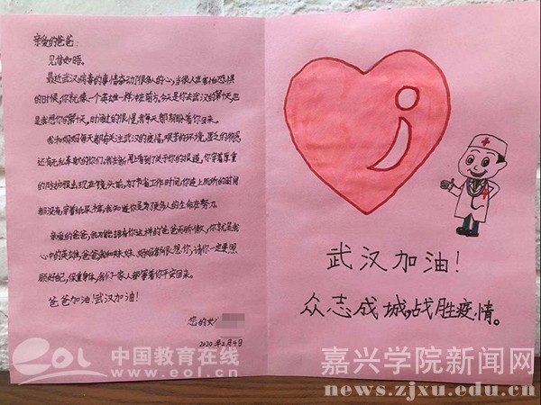 中国教育在线浙江站讯(记者 叶晨曦 通讯员 周清)新型冠状病毒感染的肺炎疫情发生以后,嘉兴学院上下众志成城,全力投入到抗击疫情的战中。其中,学校师生利用自身专业与特长,以绘画、诗词、歌曲、书信、日记等喜闻乐见的形式创作了战“疫”系列文艺作品70余件。这些作品讴歌真善美,积极传播正能量,凝聚起抗击疫情的强大精神合力。