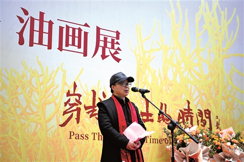 吕海舟老师在画展开幕式现场讲话,感谢到场的学生和嘉宾。