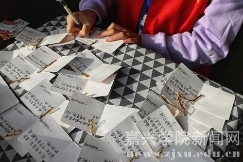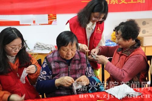 今天(11月27日),嘉兴市南湖区新兴街道王安社区组织嘉兴学院青年志愿者开展手缝束口袋活动,与辖区老人 一起巧手制作随身物件,并把学子亲手书写的祝福放入袋中,当作送给老人的贴心“护身符”。