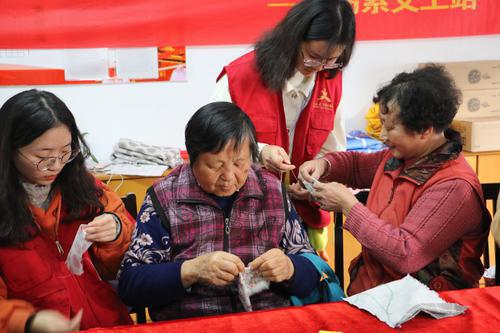 昨天,南湖区新兴街道王安社区组织嘉兴学院青年志愿者开展手缝束口袋活动,志愿者与辖区老年朋友一起巧手制作随身物件,并将学生亲手书写的祝福放入袋中,当作送给老人的贴心“护身符”。