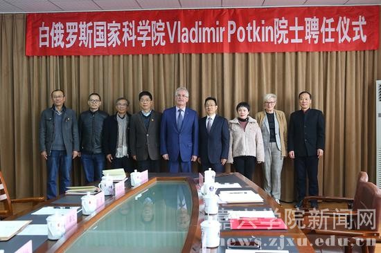 11月29日下午,嘉兴学院举行白俄罗斯国家科学院Vladimir Potkin院士聘任仪式。嘉兴学院校长卢新波、嘉兴市委组织部人才工作处处长张敏出席,副校长周亚新主持仪式。嘉兴学院校长办公室、组织部、科技处、人事处等部门负责人和生物与化学工程学院党政领导班子成员参加聘任仪式。
