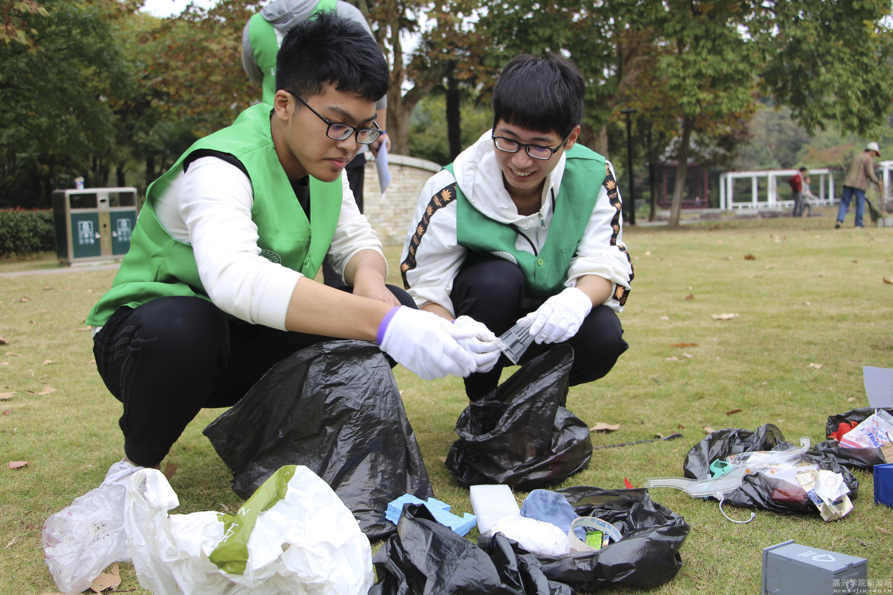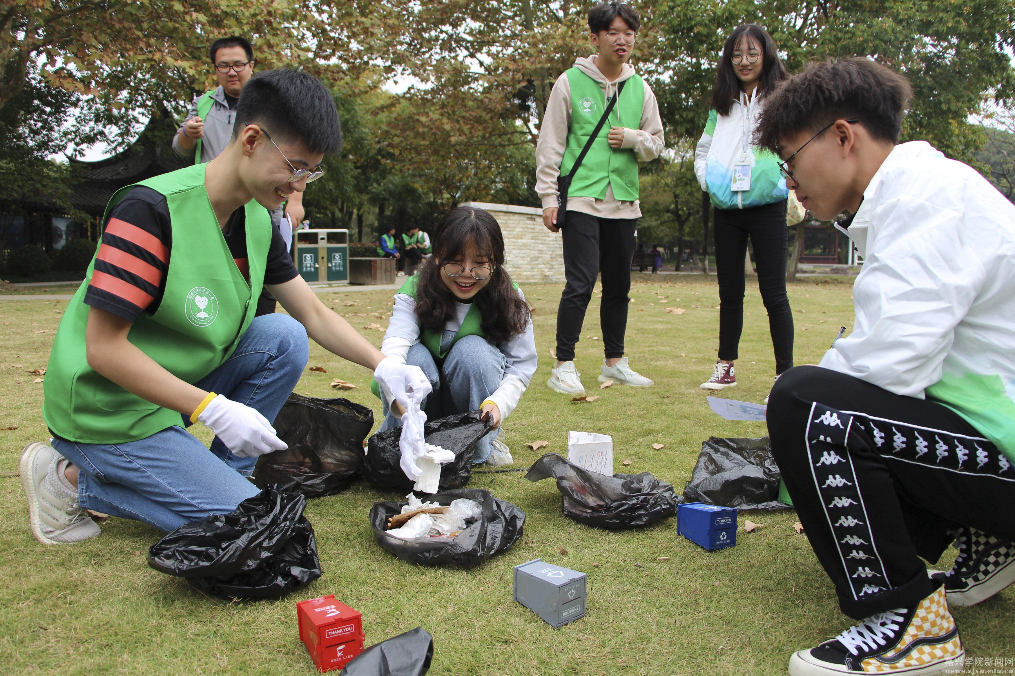 今天(11月3日)上午,由嘉兴学院南湖学院绿荫青年志愿者协会发起的“垃圾分类,律动plogging”活动在越秀校区如火如荼地进行。