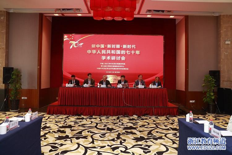 浙江教育频道讯 (通讯员 陶富军)10月19日,由中国人民大学中共党史党建研究院、浙江嘉兴学院红船精神研究中心、中国中共党史学会学科建设研究专业委员会联合主办的“新中国•新时期•新时代——中华人民共和国的七十年”学术研讨会在嘉兴召开。原中共中央党史研究室副主任章百家,教育部高等学校社会科学发展研究中心主任王炳林,嘉兴学院校长盛颂恩,全国政协委员、中国社科院马克思主义研究院原院长邓纯东,嘉兴市政府副秘书长郭保东出席会议。中共党史党建研究院执行院长杨凤城主持开幕式。来自中央党史和文献研究院、中国社科院、中国人民大学、浙江大学等高校和科研院所的60余名专家学者与会。