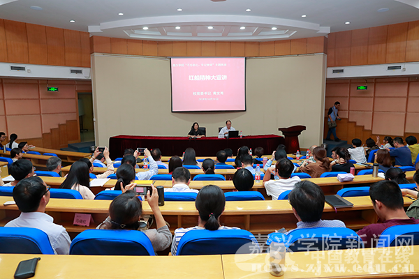 作为首场宣讲人,校党委书记黄文秀以“红船精神的育人价值与实践途径”为切入点,从红船精神的形成过程、深刻内涵、历史地位、育人价值和实践途径等五个方面分享了自己的深刻见解和实践感悟。“红船精神所蕴含的的首创精神、奋斗精神、奉献精神具有跨越时空的恒久价值和旺盛生命力。在新时代的教育长征路上,弘扬红船精神,就要聚焦立德树人根本任务,让它成为广大青年学生前行的灯塔和精神的归宿。”黄文秀说。