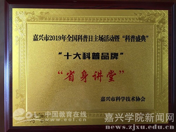 经过十二载延续与积淀,“省身讲堂”已成为嘉兴学院师生喜爱的文化品牌,形成了特有的品牌效应,享有较高的社会知名度,得到省市领导、专家的高度肯定。2011年“省身文化”品牌获全国高校校园文化建设优秀成果奖;2012年10月,“省身讲堂”被授予“浙江省社科普及示范基地”;2015年9月,“省身讲堂”在省级社科普及基地评估中获省社科联通报表彰。