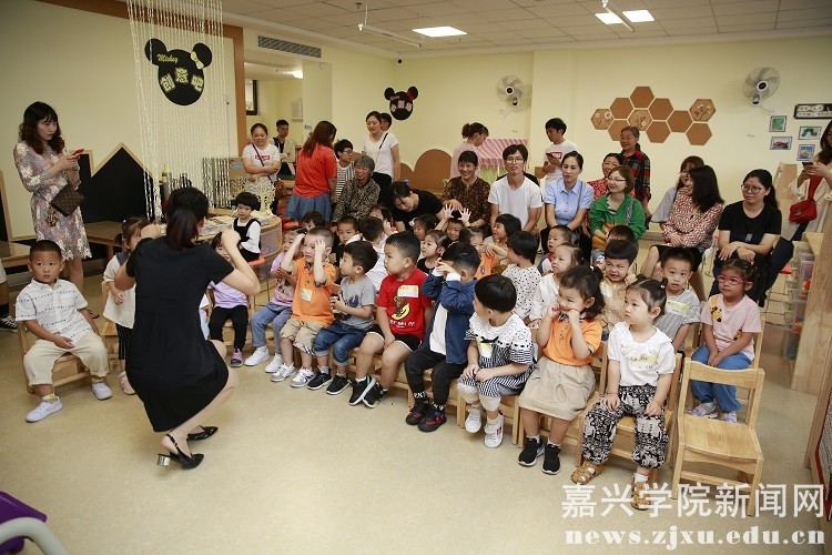 嘉兴学院相关职能部门负责人,师范学院班子成员、学前教育系教师代表,嘉大教育投资有限公司全体董事、监事,以及幼儿园全体教职工、第一届家长和孩子参加典礼。