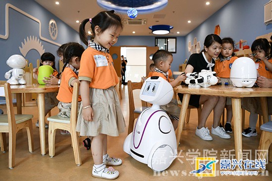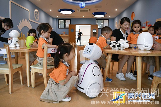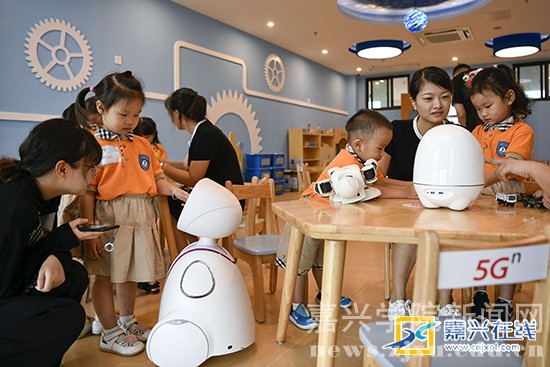 嘉兴在线9月2日讯 今天,新开园的嘉兴学院附属实验幼儿园,刚入学的小朋友们在创新科学探索教室体验与5G智能机器人对话。据了解,5G技术不仅仅用于该幼儿园的科技教学,还为校园安全保驾护航。