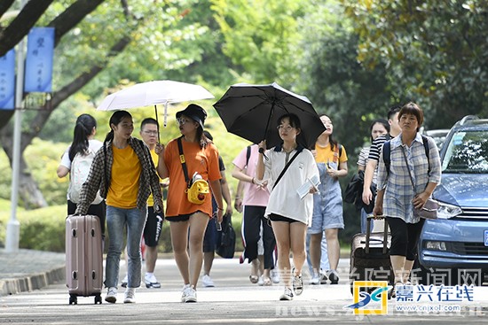 嘉兴在线8月23日讯 今天,嘉兴学院越秀校区,大一新生步入郁郁葱葱的校园,进行大学报到,开启南湖畔的大学生活。
