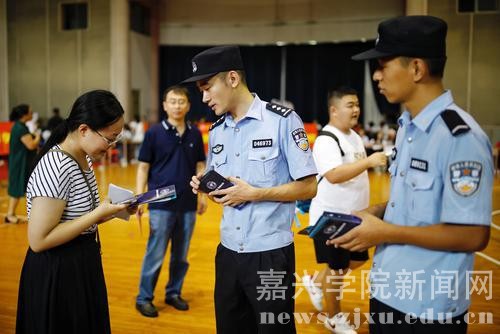 昨天,南湖区公安分局新兴派出所民警来到嘉兴学院越秀校区,对新生开展入学反诈宣传。 ■摄影 记者 赵颖硕 通讯员 韩 涛