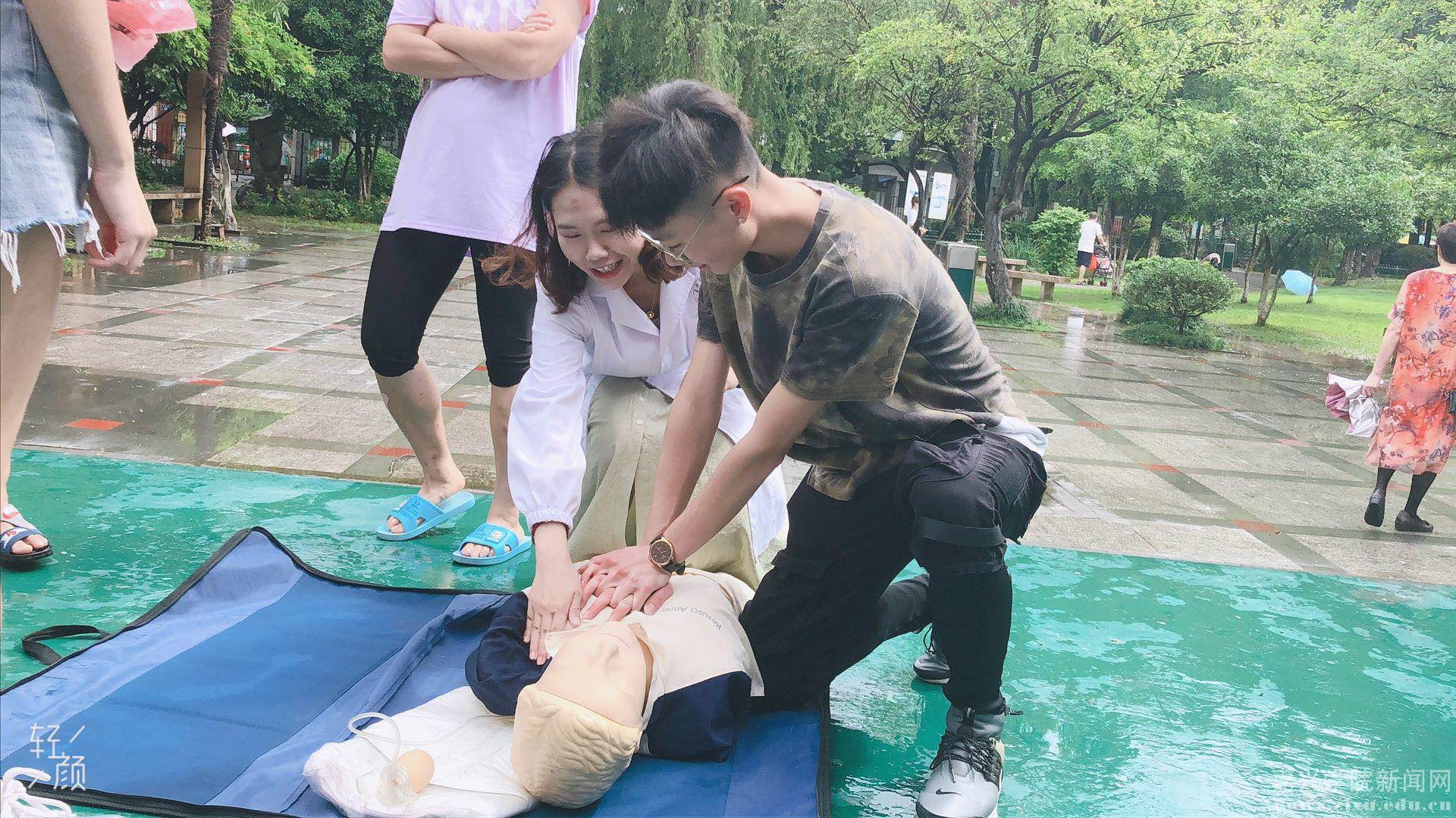 为了提高辖区居民的应急救护能力,加强应急救护知识的普及和教育,7月2日上午,文昌社区携手嘉兴学院“医心医毅”急救知识宣传队,在辖区人流量密集的越秀公园开展了应急救护知识宣传活动。