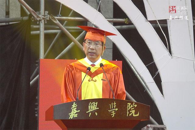 嘉兴学院校长盛颂恩在致词中代表学校向顺利完成学业的2019届6565位毕业生表示祝贺,对辛勤培育毕业生的家长和老师表达了感谢。
