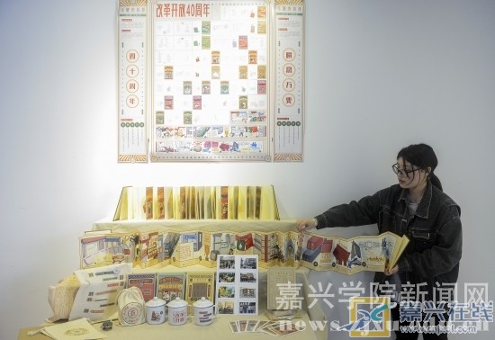 嘉兴在线4月10日讯 今天,嘉兴文化馆,嘉兴学院设计学院的大四学生们为自己的毕业设计布展,一位大学生以“改革开放”为主题,制成明信片、连环画、笔记本、茶杯、帆布袋等文创衍生品,以年轻人喜欢的方式纪念改革开放以来祖国取得的重大成就。