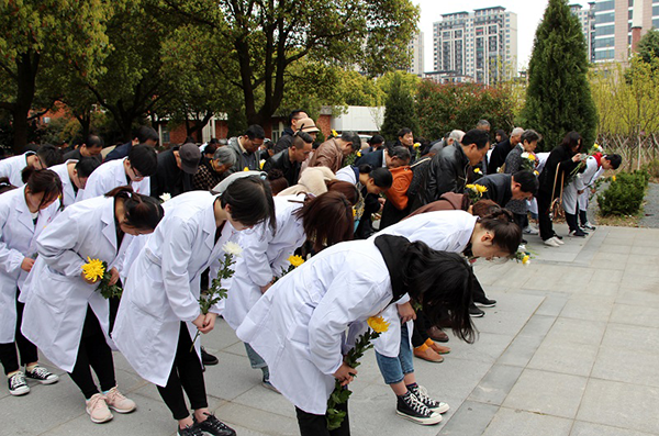 “他们在我们心里一直是传道授业的无语良师,虽然不言不语,却铮铮诉说着生命的圣洁和奉献的高尚。他们用这样一种方式诠释践行着人间的大爱、人性的伟大”。在场学生纷纷表示,缅怀是对他们心灵的一次洗礼,他们会用真情来追思良师,不负良师所托,扎实掌握医学知识,为祖国的医学事业做出自己的贡献。