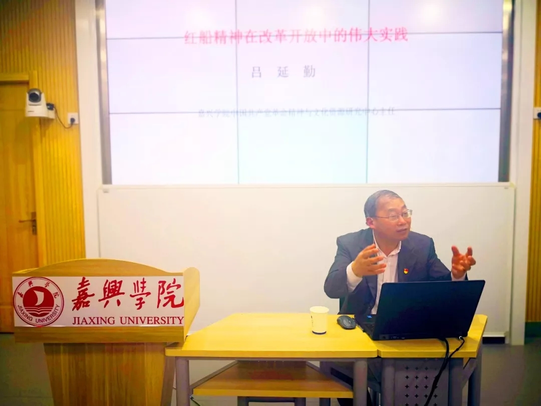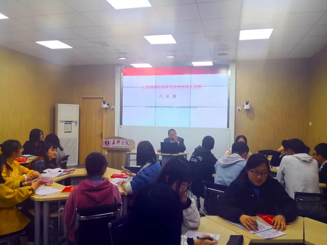 “红船精神在改革开放的伟大实践中是如何体现的”“怎样理解改革开放精神与红船精神是一脉相承的”“当代大学生如何弘扬红船精神,投身于改革开放的伟大实践”…… 3月28日,在浙江嘉兴学院的智慧教室里,嘉兴学院党委副书记、红船精神研究中心主任吕延勤老师正在认真地向学生讲述着红船精神与改革开放之间的关系。这是嘉兴学院的精品在线开放课程《红船精神与时代价值》见面课首次面向全国直播,而吕老师本次直播课的主题正是“红船精神在改革开放中的伟大实践”。