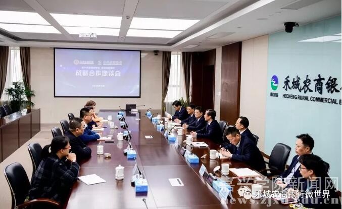 签约仪式前,禾城农商银行与嘉兴学院南湖学院双方领导开展合作交流座谈。