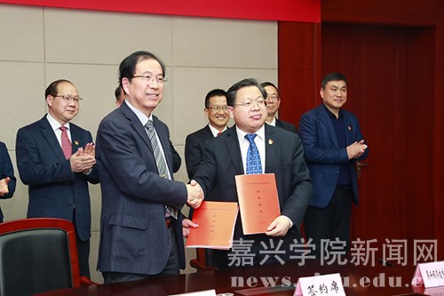 嘉兴学院校长盛颂恩、经开区管委会主任盛付祥分别代表双方签署协议