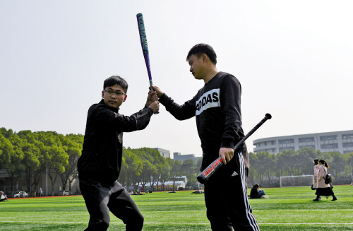 昨天中午,嘉兴学院越秀校区田径场上,专业棒垒球教练正在指导同学们标准的挥杆姿势。据了解,嘉兴学院上学期开设了棒垒球课程,目前已经有6个班级近300名学员。
