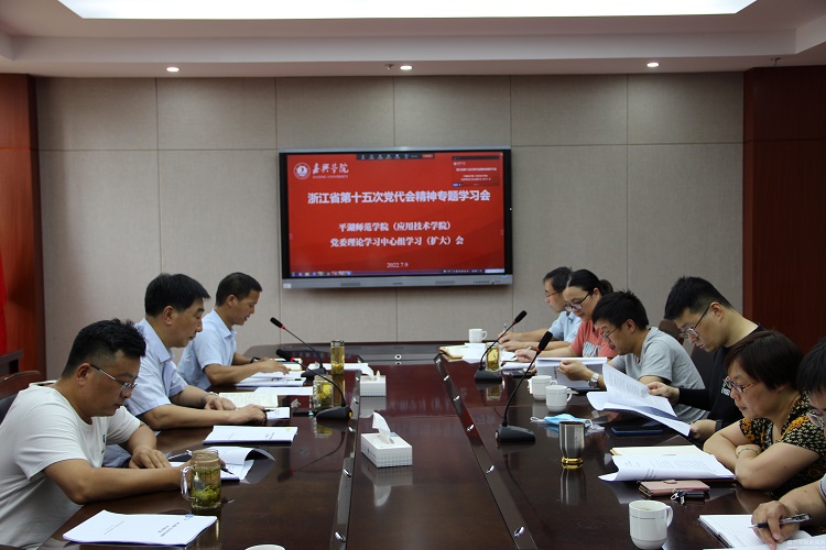 7月9日,平湖师范学院(应用技术学院)举行浙江省第十五次党代会精神专题学习会暨理论学习中心组学习(扩大)会,深入学习领会省第十五次党代会精神。学院党委书记朱素斌作中心发言,党委副书记冯伟芳主持会议。