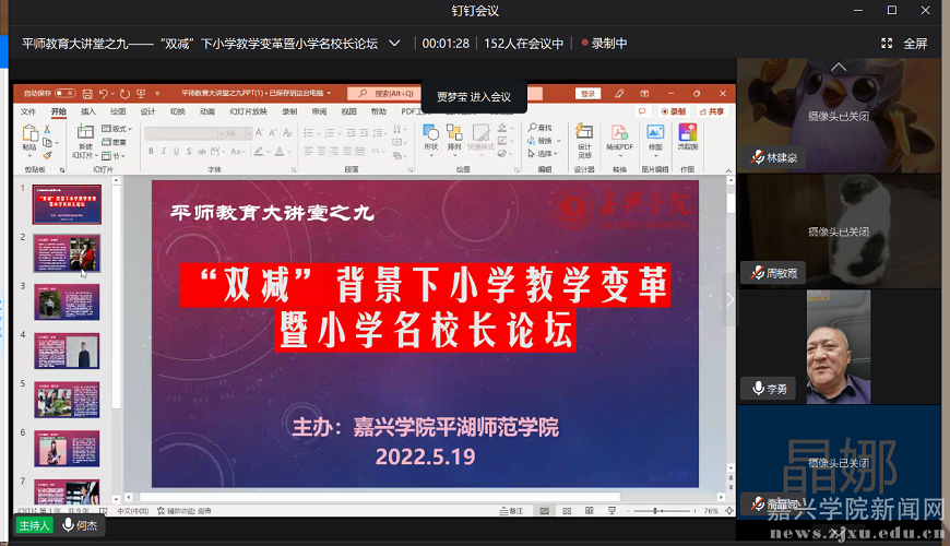 5月19日下午,平湖师范学院举办“平师教育大讲堂”之九——“双减”背景下小学教学变革暨小学名校长论坛。