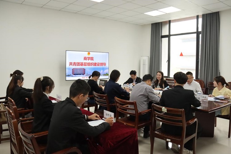 5月19日下午,校团委书记张婧嫄、副书记李雷一行到商学院督导共青团基层团组织建设工作。文法学院团委书记计丹峰、经济学院团委副书记梅嘉琦随同参会。学院党委副书记潘欣、学工办主任张啸峰、团委书记李黎及学生代表参加会议。会议由潘欣主持。
