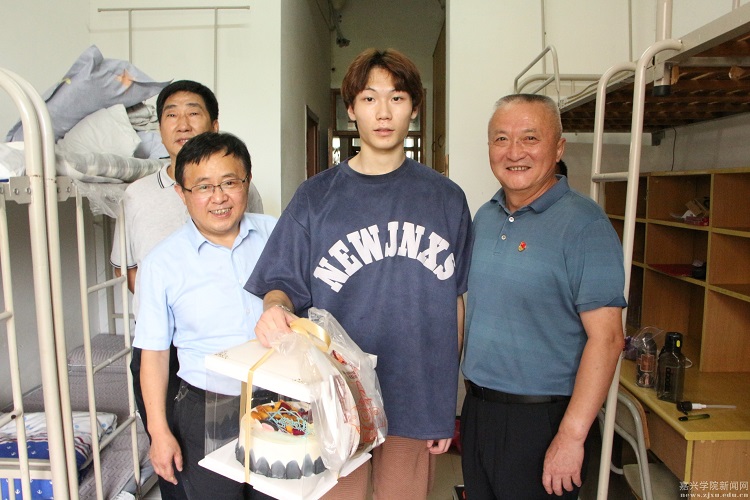 胡俊云来到新生报到现场,慰问现场工作人员和志愿者,希望教师和志愿者耐心细致地为新生办理入学手续,做好解疑答惑,为新生提供周到、热情、温馨的服务,让新生尽早融入校园。在新生宿舍,胡俊云为报到当天生日的学生送上生日蛋糕,与部分新生亲切交流,详细了解他们的学习生活需求和对大学四年的规划打算;在联系寝室详细询问了学生暑期参加社会实项目、暑期生活情况。