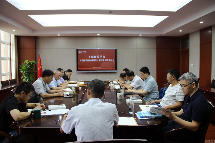 8月30日,平湖师范学院(应用技术学院)理论学习中心组举行《习近平谈治国理政》第四卷专题学习会。学院党委书记朱素斌主持并作中心发言,党委理论学习中心组成员、党支部书记、教育硕士学位申报工作专班成员参加学习会。