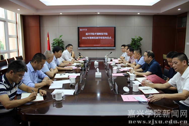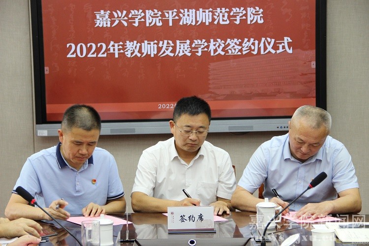 9月22日下午,我校平湖师范学院举行2022年教师发展学校签约仪式。平湖市教育局副局长陆忠民,浙江省平湖中学等8所教师发展学校负责人,学院党委书记朱素斌、院长李勇等出席签约仪式。