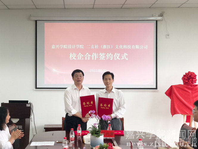 9月30日上午,嘉兴学院设计学院·(中国)二玄社文创研究中心成立仪式举行。图书馆馆长曹坚,图书馆直属党支部书记、副馆长葛培华,二玄社(浙江)文化科技有限公司总经理吴斌,设计学院院长韦浩、副院长徐利平、党委副书记叶砚出席仪式。副院长徐利平主持仪式。