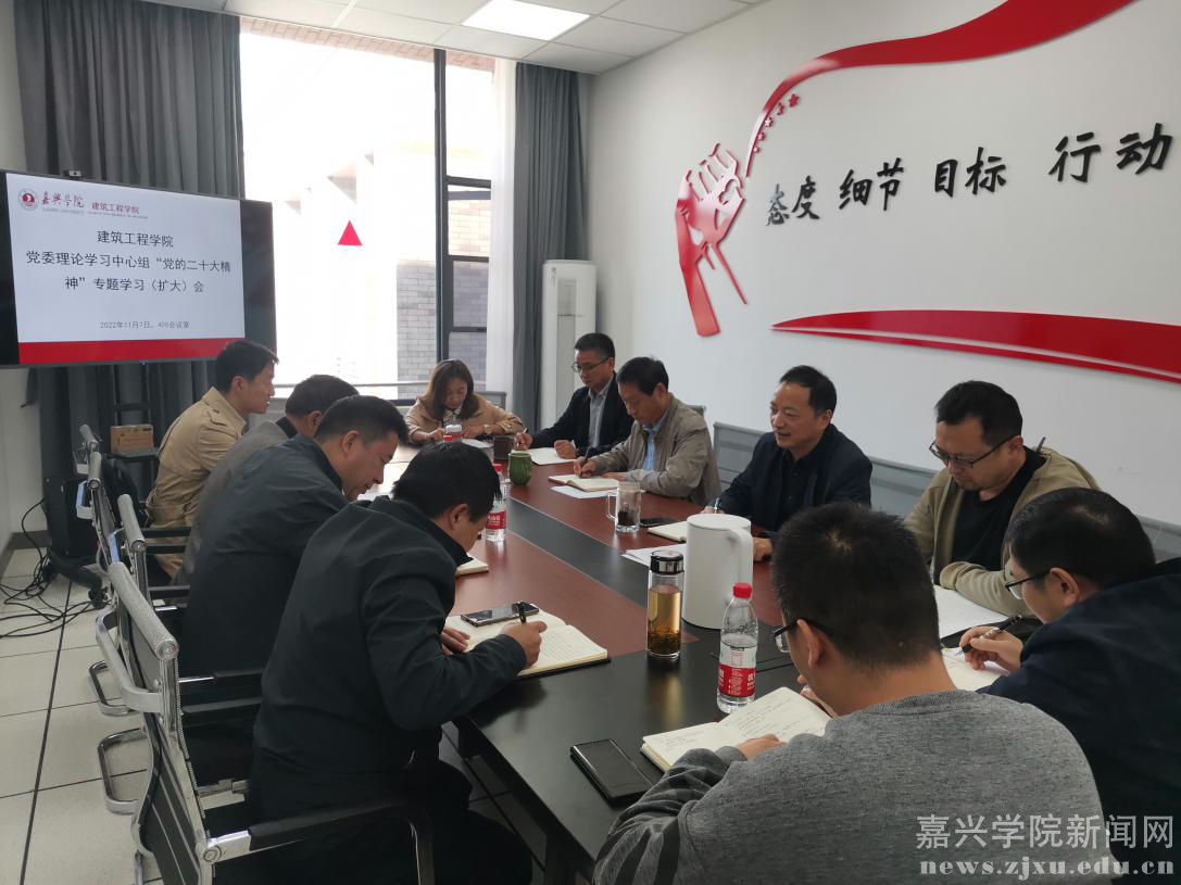 11月7日,建筑工程学院党委理论学习中心组举行“学习贯彻党的二十大精神”专题学习(扩大)会。党委书记姚民乐主持会议,副院长黄殿武作中心发言。学院党委委员、党委办公室主任、各党支部书记参加会议。