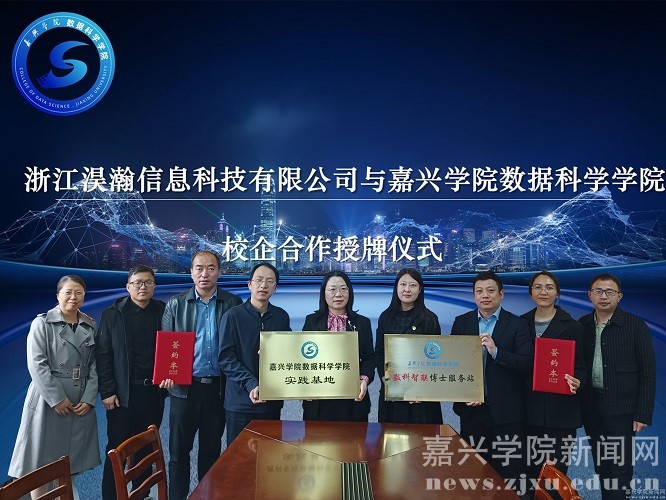 11月23日,数据科学学院与浙江淏瀚信息科技有限公司举行校企合作签约授牌仪式。浙江淏瀚信息科技有限公司总经理毛亚萍,副总经理刘永贵、许红权,学院院长张景军、党委书记战昕、副院长宁自军等出席仪式。