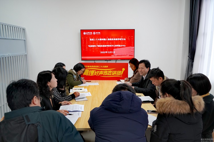 为深入学习宣传贯彻党的二十大精神,推动习近平新时代中国特色社会主义思想进教材、进课堂、进学生头脑,12月1日下午,商学院召开党的二十大精神融入课程思政教学研讨会。会议由“红船精神+”课程思政教学研究中心商学院分中心主办,商学院各专业系主任、教师代表参会。副院长李郁明主持会议。