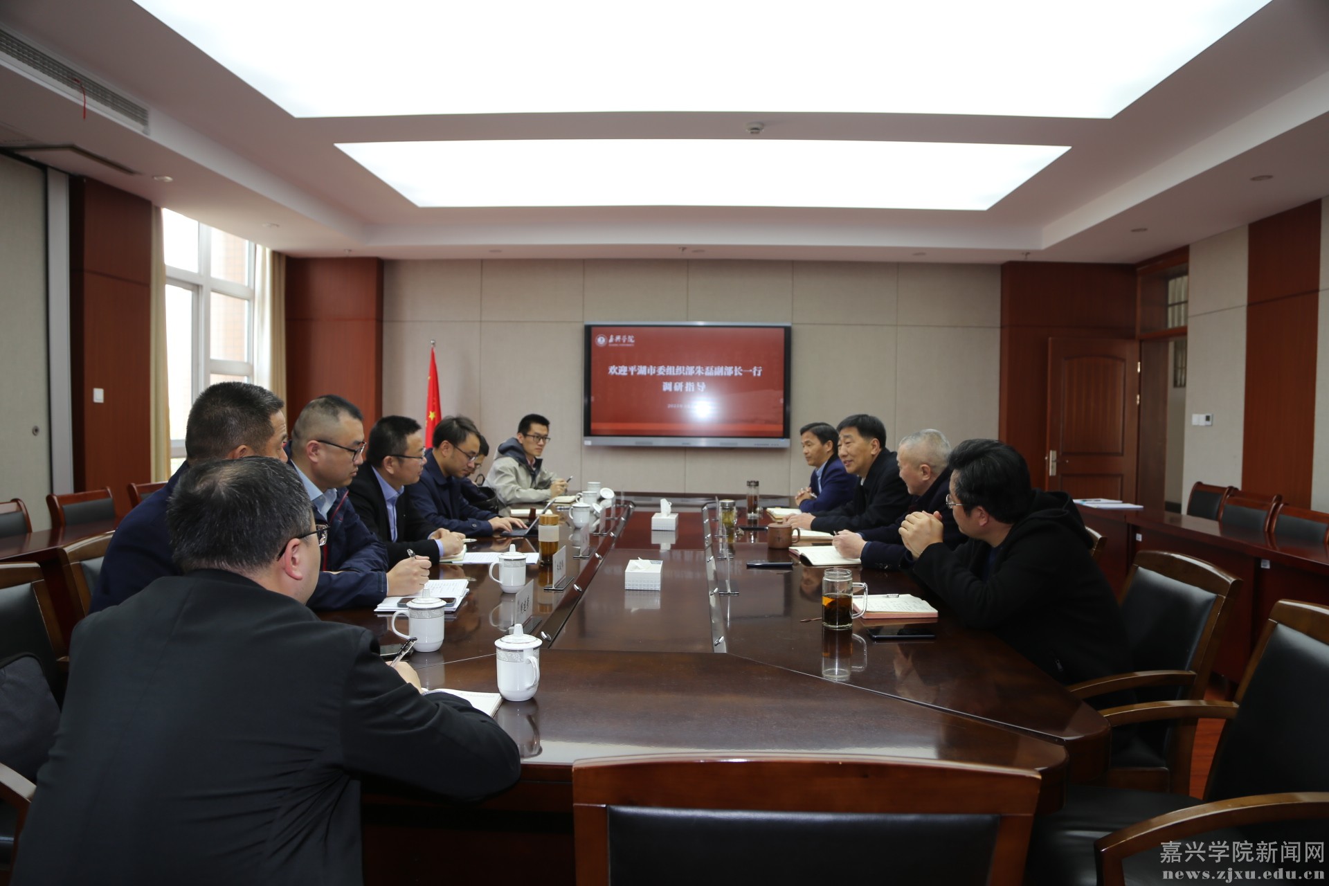 3月7日上午,平湖市委组织部副部长、市委两新工委书记朱磊一行到平湖师范学院(应用技术学院)调研指导人才工作,平湖市教育局、人力社保局、经济开发等相关人员陪同调研,平湖师范学院(应用技术学院)党政班子成员参加调研座谈。