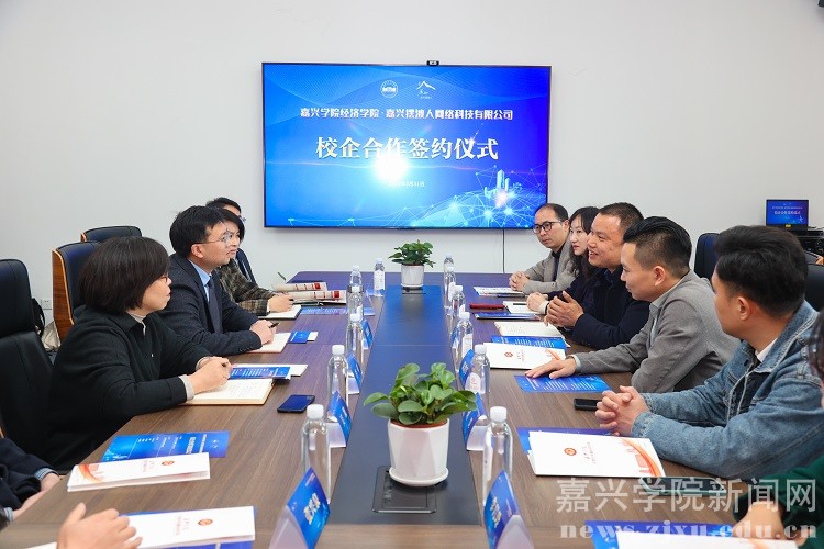 王学成充分肯定了经济学院近年来取得的办学成就,并介绍了摆渡人网络科技有限公司的基本情况和价值理念。作为阿里巴巴国际站(嘉兴)服务中心在嘉兴的服务主体公司,公司服务嘉兴800多家跨境电商企业,积累了丰富的跨境电商企业资源及相关经验。中心排名全省第一、全国前五。公司始终坚持以“渡己”为愿景、以“达人”为使命,希望充分发挥校企协同育人优势,为跨境电商、数字经济专业学生提供调研、学习培训以及优质的实习与就业机会,促进大学生更好地规划职业生涯和顺利就业创业,同时为相关专业的理论与实践教学、专业建设等提供企业资源与支撑。