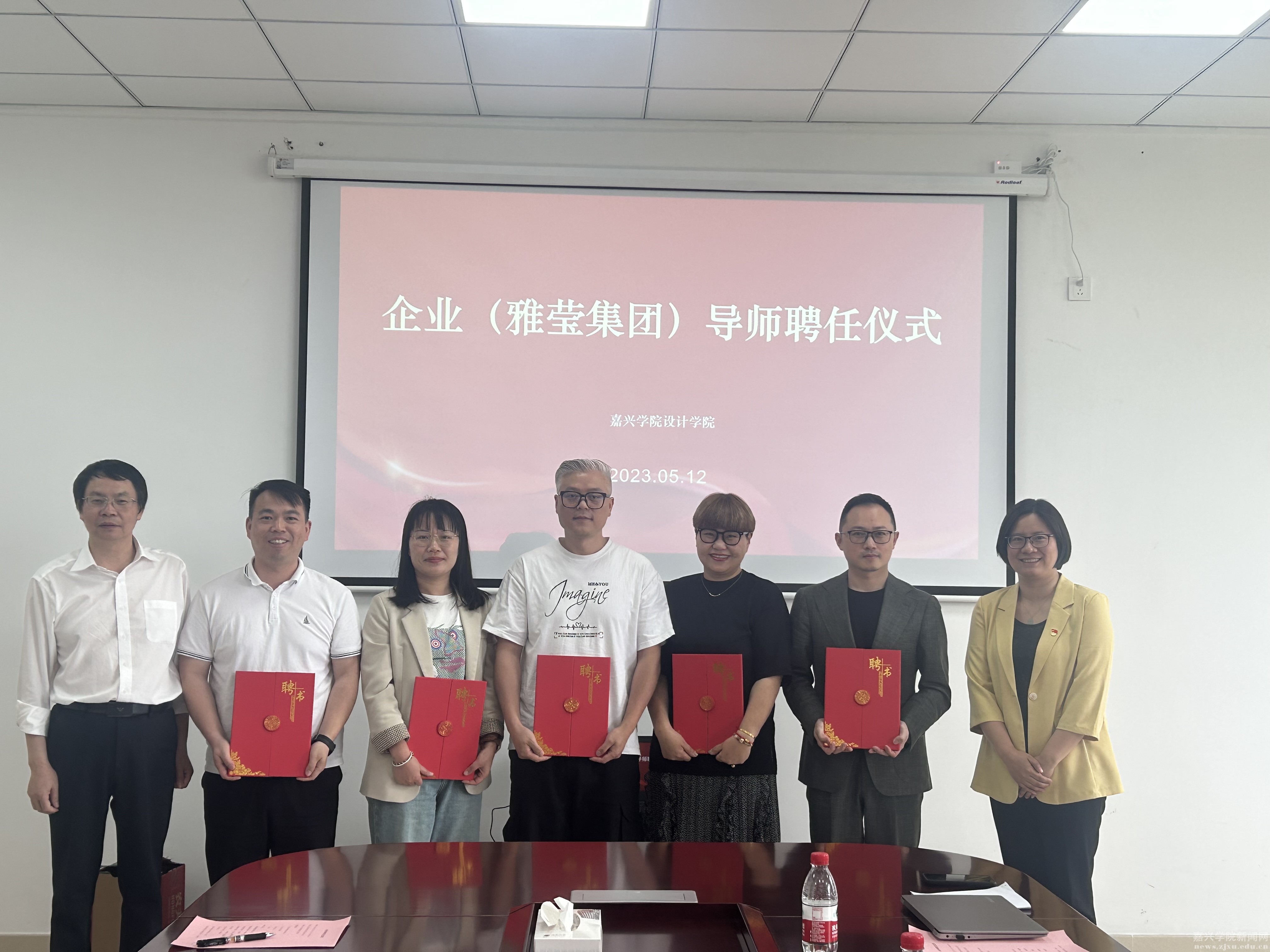 5月12日上午,设计学院在博采楼308会议室举行企业导师聘任仪式。来自雅莹集团股份有限公司的五位设计师受聘为企业导师,学院院长韦浩、党委书记黄芳芳、副院长裘玉英出席此次聘任仪式。仪式由学院副院长裘玉英主持。
