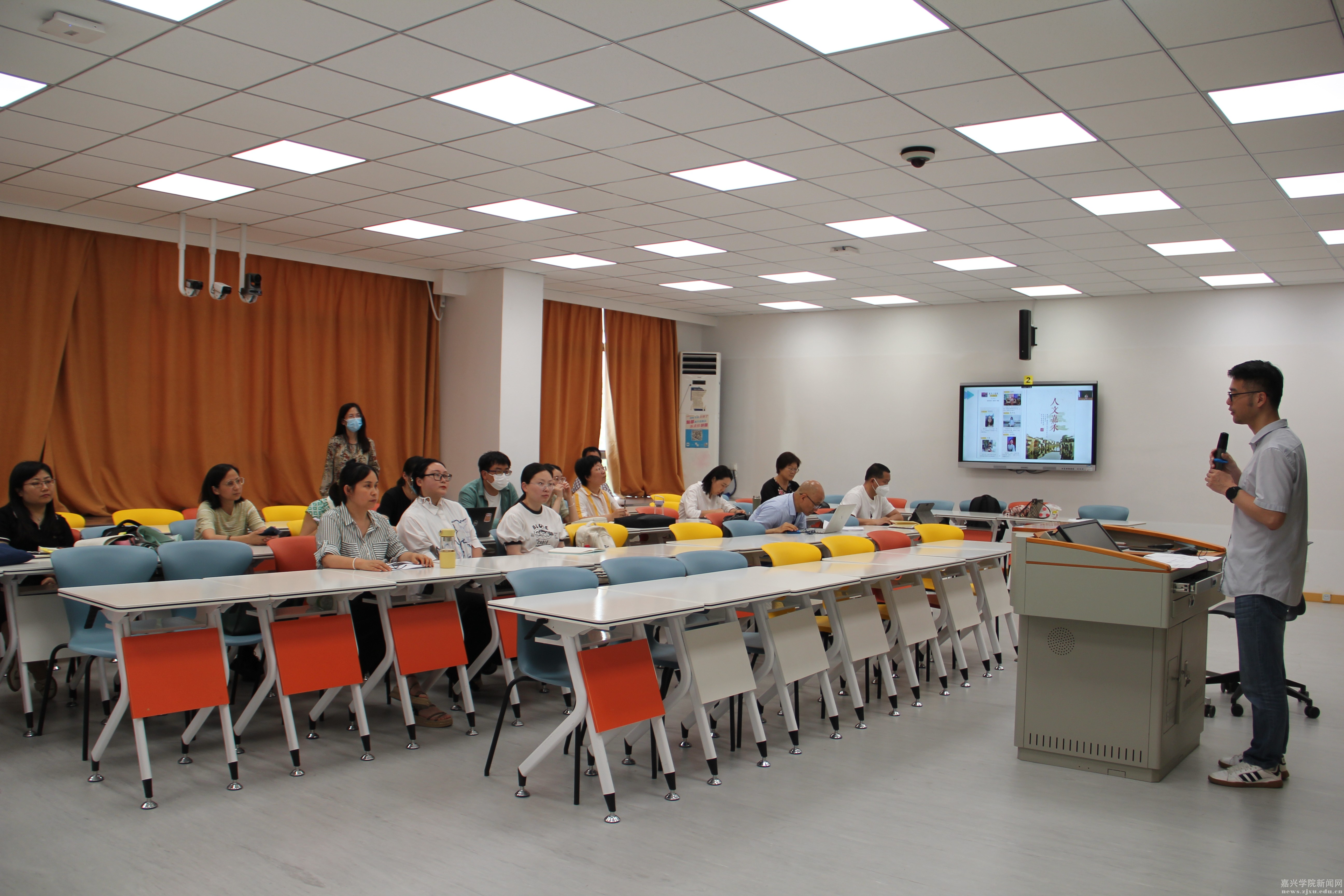 6月14日下午,由学校教发中心主办,外国语教发分中心承办,文法学院、平湖师范学院(应用技术学院)教发分中心协办的2023年第三期教学沙龙活动在兴礼楼智慧教室209举行。本期教学沙龙的主题是“外语校本课程的开发与实践”,教学沙龙由外国语学院副院长喻锋平主持,外国语学院鲁俊丰和侯飞两位教师担任主讲嘉宾。270余位老师通过线上和线下的方式参与了本次活动。