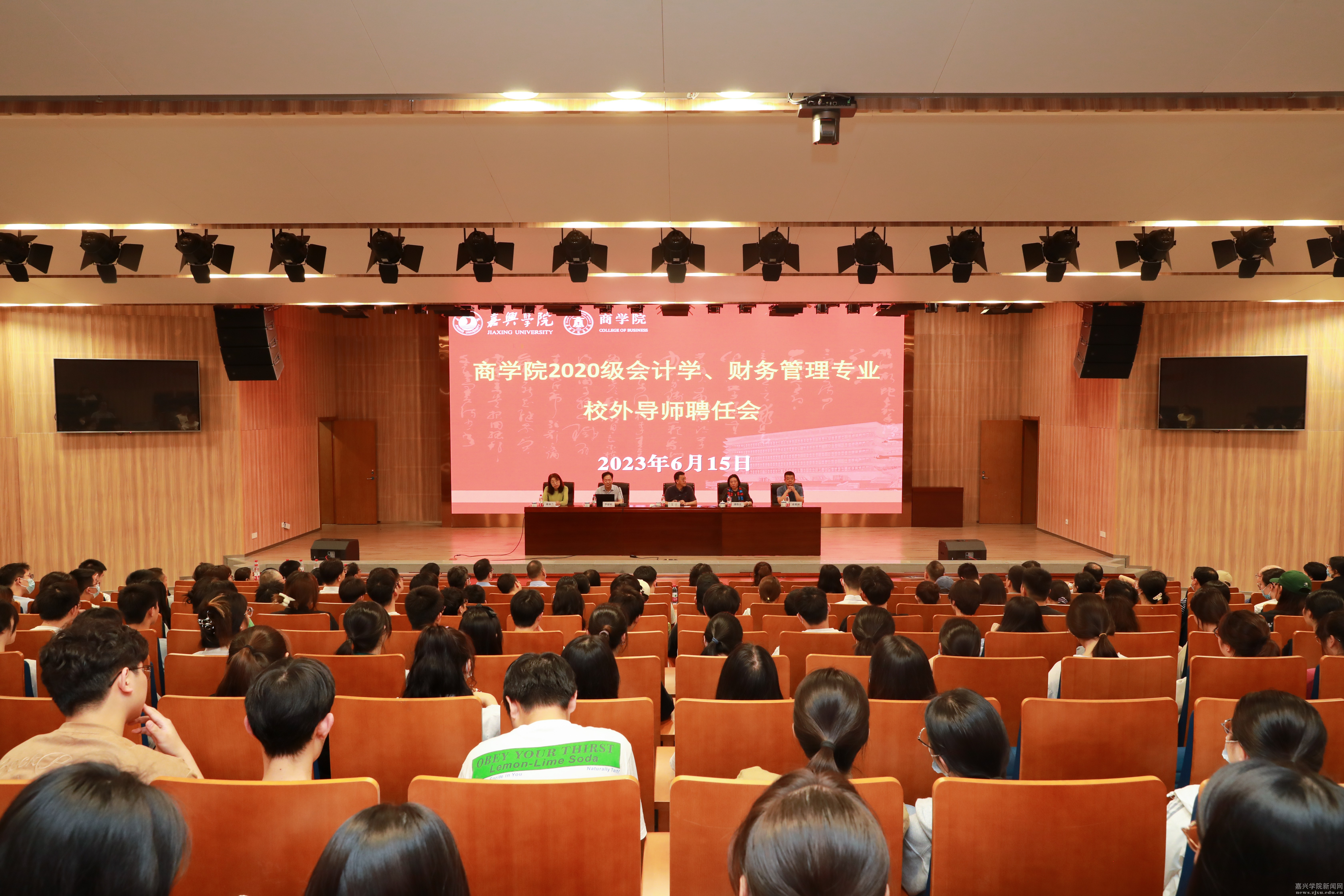 6月15日下午,商学院在图书馆报告厅召开了2020级会计学、财务管理专业学生的“双导师制”聘任见面会。学校教务处相关领导,商学院领导及来自嘉兴市内各企事业单位财会实务界的69名校外导师、会计学和财务管理专业的全体专业教师和2020级全体学生参加了大会。会议由商学院副院长李郁明主持。