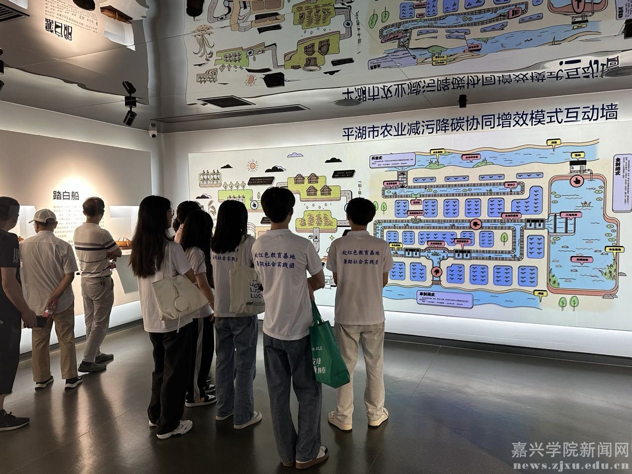 下午,实践团前往平湖曹桥马厩村,参观中国乡村低碳科普馆,以互动的形式感受农业减污降碳协同增效模式,体验划艇游戏等,近距离真实地接触美丽乡村的现状,深刻体验到了中国的乡土文化和红色记忆的魅力。