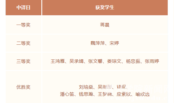 浙江省第二届多语种思政笔译大赛由浙江省翻译协会和浙江外国语学院联合举办,共有来自24所高校的700余名在校本科生报名参加。外国语学院日语专业学生积极参加中译日组比赛,斩获了一等奖1项、二等奖2项、三等奖6项、优胜奖8项,延续了去年参加第一届多语种思政笔译大赛的好成绩,获奖数量仅次于浙江外国语学院,位列全省开设日语专业高校的第二位。