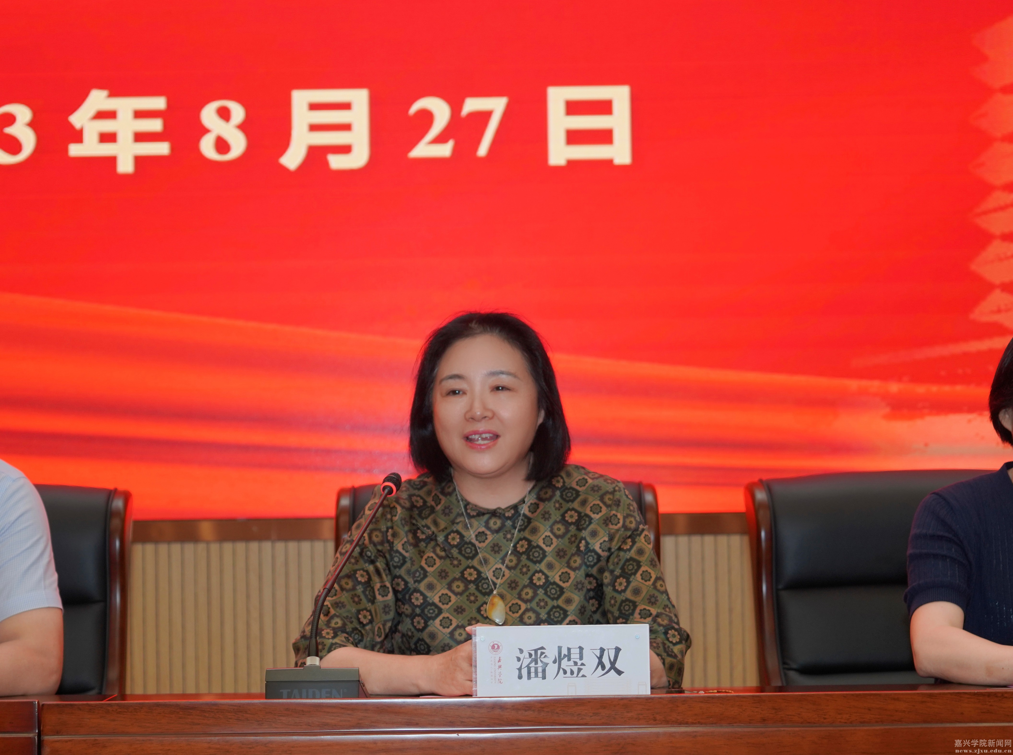 商学院院长潘煜双教授致欢迎词,对我院2023级508名新生的加入表示热烈欢迎,对家长的支持与信任表示诚挚感谢。她以校史院情引入,深情满怀的介绍了百年嘉院百年商科的发展历程和学院概况,还就2023级大学新生应当如何适应大学生活、怎么度过大学四年等问题与家长进行交流,强调家长要保持对孩子各方面关注,常沟通、多交流,共同培养学生全面发展。潘欣介绍了学院日常管理、家校联系相关事宜,从学生管理角度与新生家长交流分享大学学习生涯的“苦”“难”与“红线”,对家校共育提出相关建议。