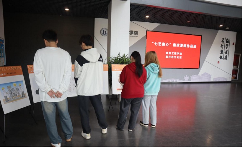 《亮起监督长明灯》、《就拿一点点》等30幅廉政漫画展览作品走进兴德楼北楼,这是建筑工程学院纪委、嘉兴市文化馆联合举办的“七艺廉心 清风润你我”反腐倡廉主题漫画展。