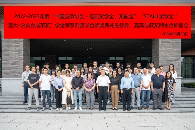 5月30日下午,材纺学院在行政楼报告厅隆重举行“中国皮革协会-杨正奖学金、奖教金”、“STAHL奖学金”、“嘉大-永发合成革奖学/教金”等系列奖学金颁奖典礼。中国皮革协会副书记张西文,办公室主任曹玉亭,中国皮革协会副理事长、浙江省皮革行业协会书记、执行理事长李伟娟等出席活动。