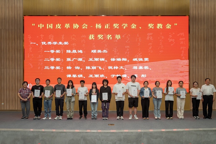 随后,各位领导分别为获奖师生颁奖,获奖学生代表陈晟鸿、倪梓文、郑乐怡和获奖教师张彩丹分别发言,感谢中国皮革协会和各爱心企业的大力支持,感谢学院和专业的精心培养。