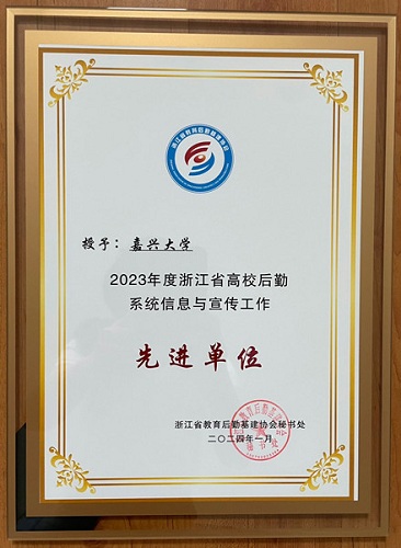 大会还表彰了2023年度浙江省高校后勤系统信息与宣传工作先进单位、先进个人,我校后勤服务有限公司获评浙江省高校后勤系统信息与宣传工作先进单位,皇琴获评浙江省高校后勤系统信息与宣传工作先进个人。