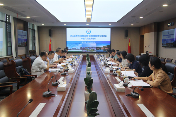 6月27日下午,浙江省教育后勤基建协会商贸管理专业委员会一届六次委员会(以下简称商专会)在我校梁林校区召开。会议由商专会主任吴通苗主持,全体商专会委员参加会议。