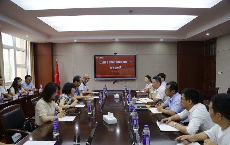 7月14日,丽水学院教师教育学院党委书记王淑莲、院长潘巧明一行来平湖师范学院交流。平湖师范学院副院长(主持工作)朱小烽、副院长周世厚、学院相关党支部负责人参加座谈。