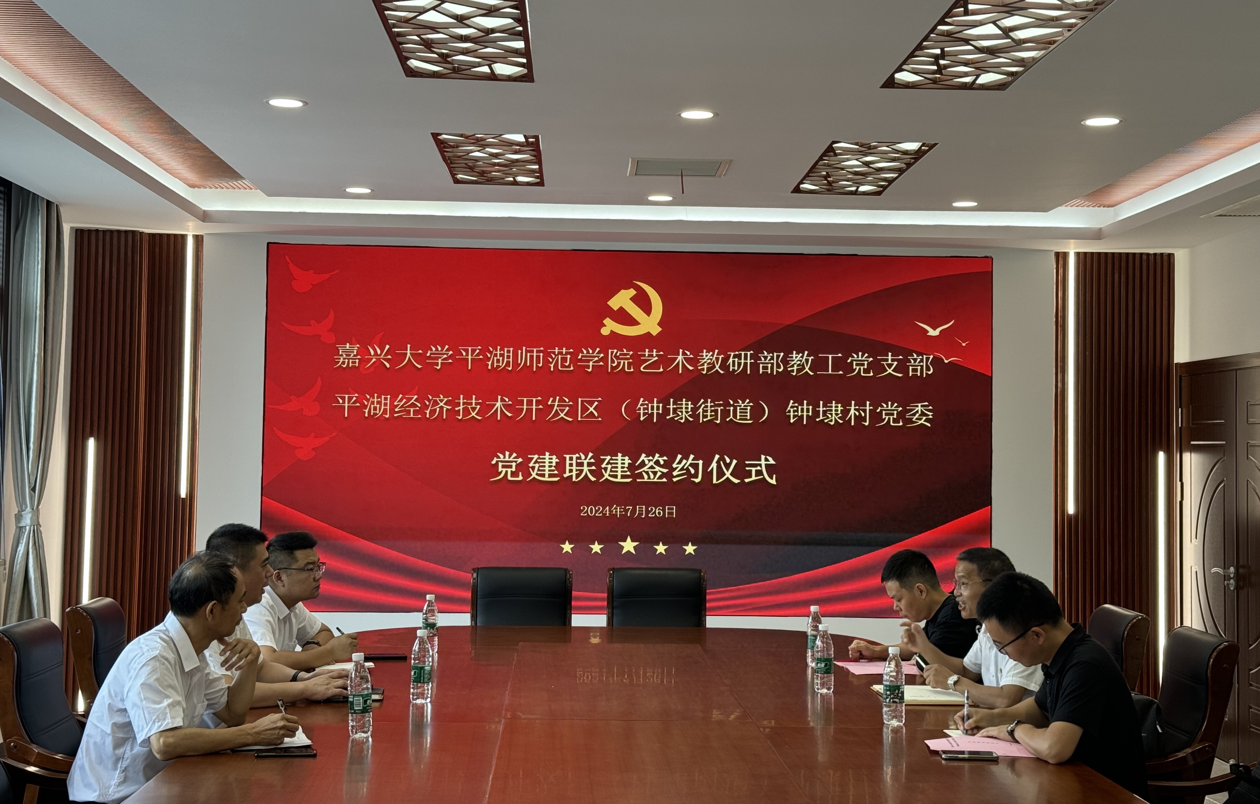 艺术教研部教工党支部与平湖经济技术开发区(钟埭街道)钟埭村党委进行了党建联建协议书签订仪式。双方同时就下一步如何发挥各自优势,加强共建共享、推进党建共同体、文化共同体建设深入进行了交流。