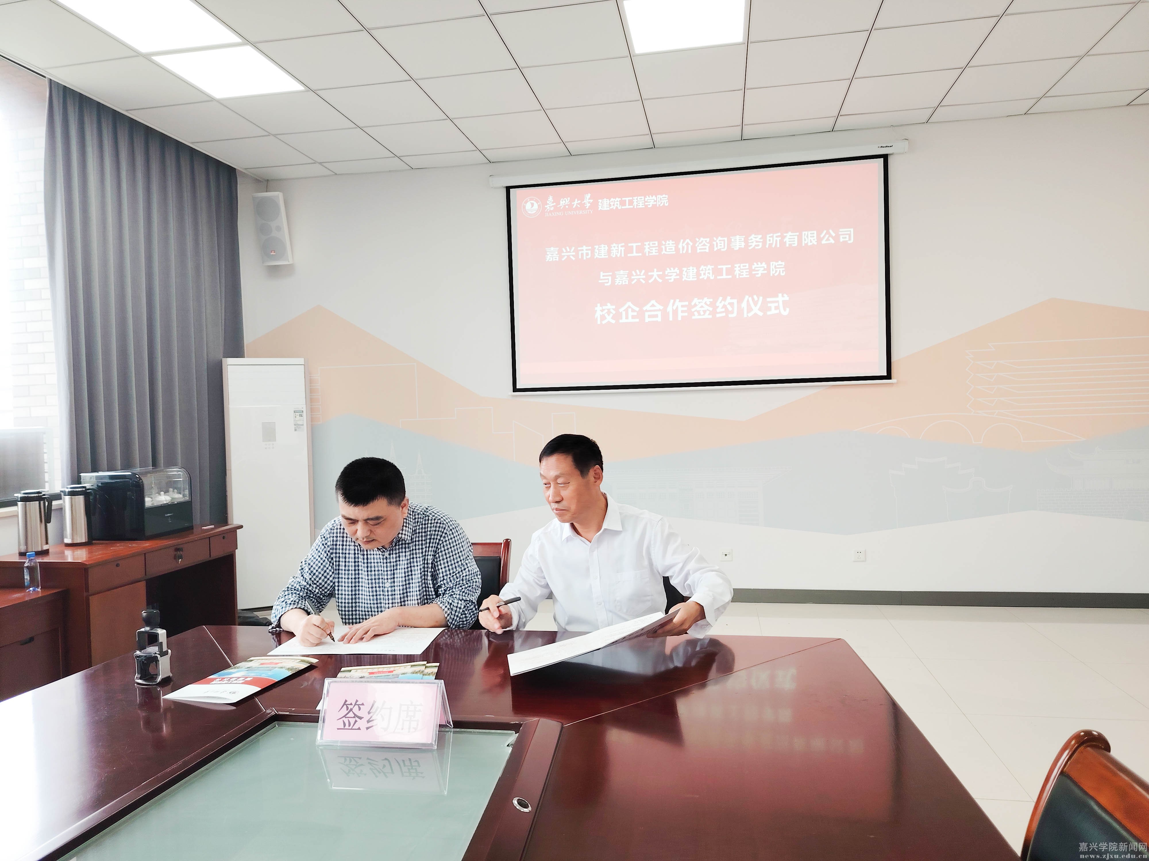 10月18日上午,嘉兴市建新工程造价咨询事务所有限公司(以下简称“建新公司”)总经理、建筑工程学院94级优秀校友沈劼先生莅临建筑工程学院,并代表公司与学院正式签订了校企合作及捐赠协议。院党委书记童勇军、院长王恩茂、党委副书记杨智慧等出活动。