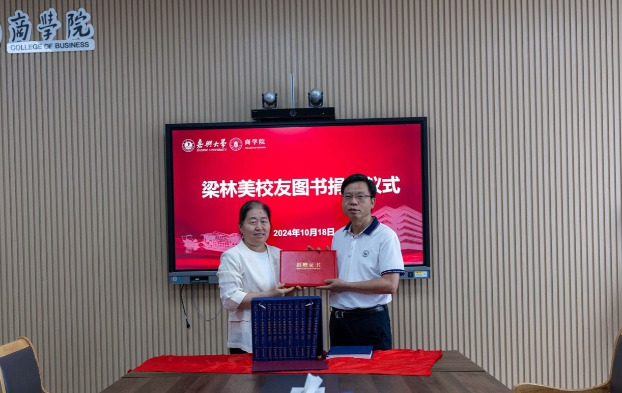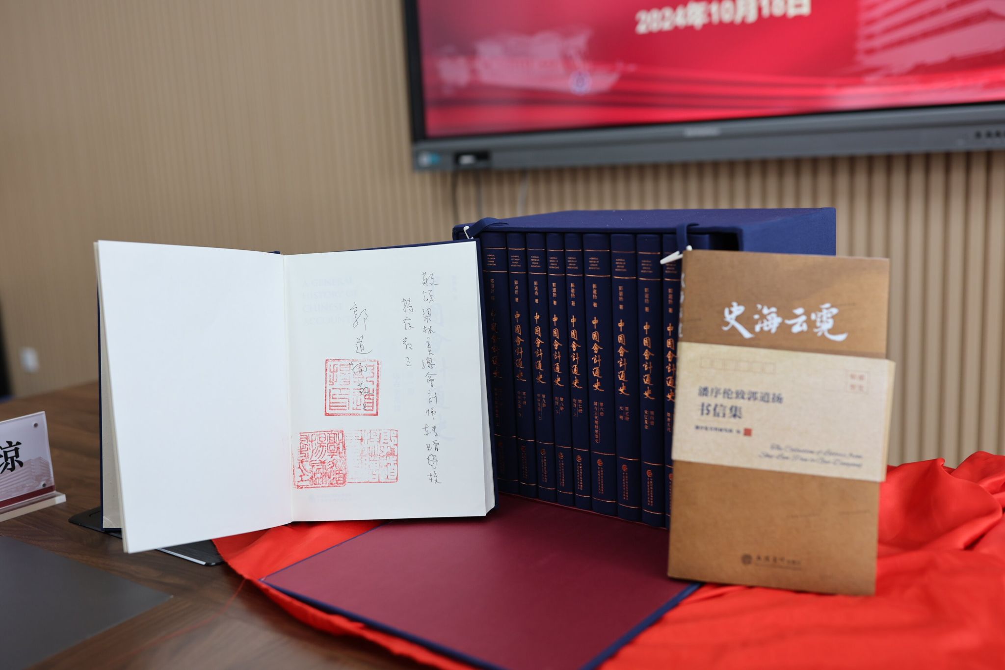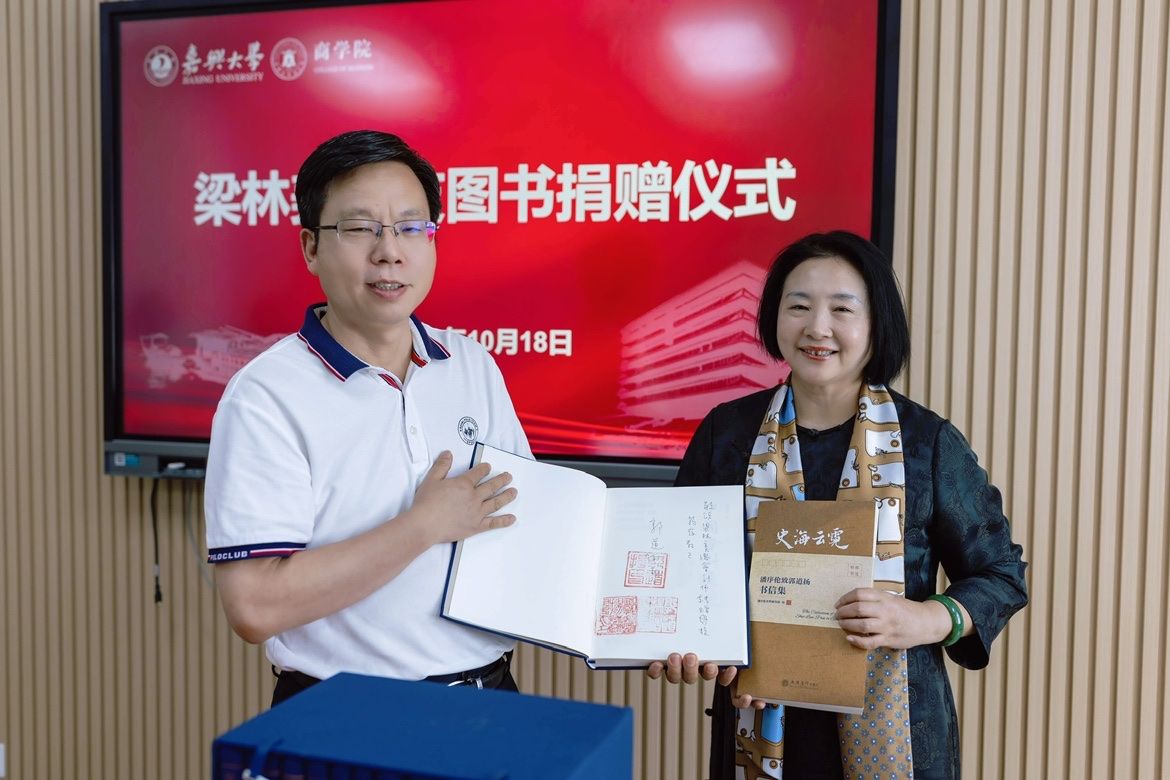 仪式上,梁林美将由郭道扬教授特意为庆贺嘉兴大学办学110周年而亲笔签名并印章的最新出版的精装《中国会计通史》一套(12册)捐赠给母校,由图书馆收藏,以富学校典藏。